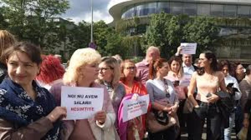 Angajaților Guvernului au declanșat luni un protest spontan. Ei s-au adunat în curtea instituției și cer salarii mai mari.