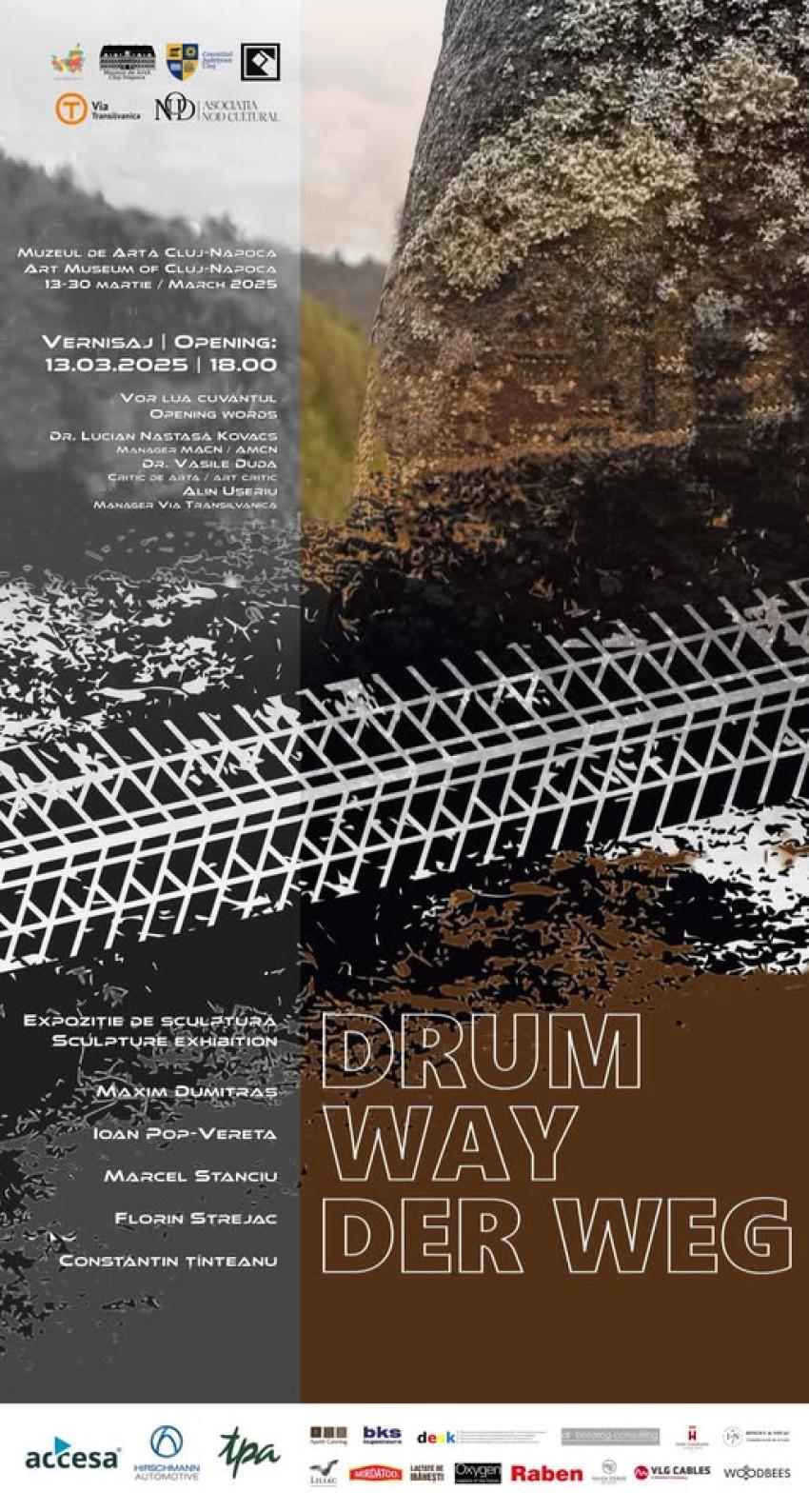 Muzeul de Artă Cluj-Napoca, instituție publică de cultură care funcționează sub autoritatea Consiliului Județean Cluj, în parteneriat cu Muzeul de Artă Comparată Sângeorz-Băi și Asociația Nod Cultural, invită publicul să viziteze, în perioada 13-30 martie 2025, expoziția de sculptură „Drum”, care reunește lucrări semnate de artiștii Maxim Dumitraș, Ioan Pop-Vereta, Marcel Stanciu, Florin Strejac și Constantin Țînteanu. Deschiderea oficială va avea loc joi, 13 martie 2025, de la ora 18:00.