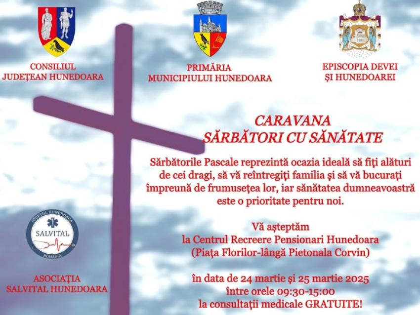 Asociația Salvital Hunedoara în parteneriat Consiliul Judetean Hunedoara, Episcopia Devei și Hunedoarei și Primăria Hunedoara a organizat, în perioada 24-25 martie 2025, la Centrul de Recreere Pensionari Hunedoara (P-ța Florilor lângă Pietonala Corvin), o acțiune de testare gratuită a sănătății populației!