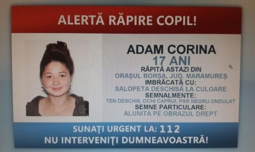 Potrivit Poliției, răpirea s-a produs la ora 18,45, în orașul Borșa, județul Maramureș. Adam Corina Andreea, în vârstă de 17 ani, a fost urcată cu forţa de către un tânăr, într-un autoturism de culoare neagră, pe strada Dragoş Vodă în zona Peco din oraşul Borşa. În momentul răpirii, tânăra era însoţită de fratele ei în vârstă de 12 ani. Dispariţia acesteia a fost reclamată poliţiei de tatăl fetei, potrivit Agerpres.