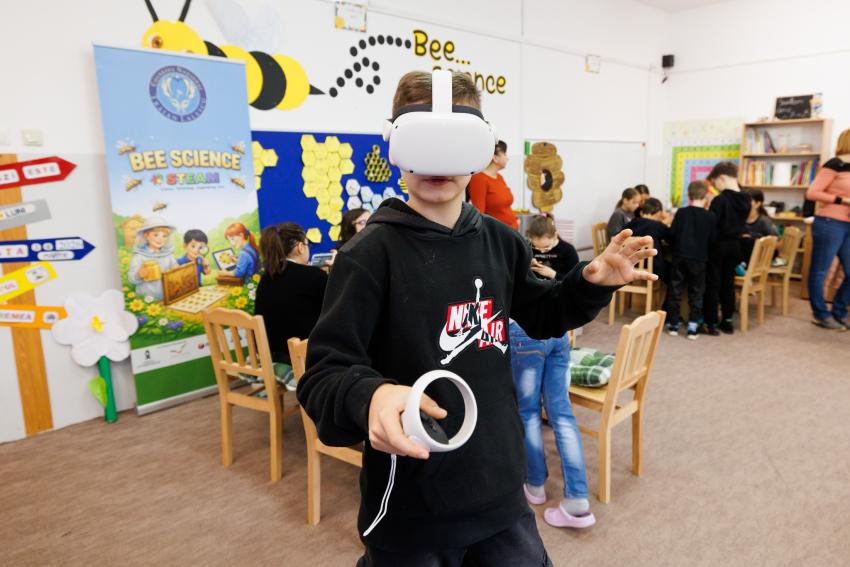 Cu ajutorul ochelarilor VR, cei mici au descoperit virtual unele dintre cele mai frumoase obiective turistice din Caraș-Severin, transformând totul într-o experiență captivantă și interactivă.